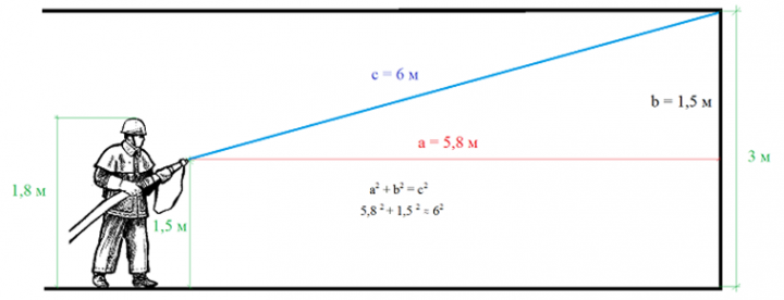 В соответствии с таблицей 3 СП 10.13130.2009 для обеспечения высоты (длины) компактной части струи 12 м и расхода пожарного ствола 2,6 л/с с клапаном пожарного крана DN 50, с рукавом длиной 20 м и стволом с диаметром спрыска наконечника пожарного ствола 13 мм необходимо давление у пожарного крана 0,21 МПа.