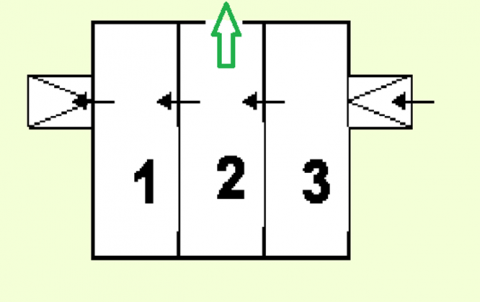 Вопрос возникает при проектировании встроенных подземных автостоянок большой площади, когда в автостоянке больше 2-х отсеков. Например, при трех последовательно расположенных отсеках въезд и выезд есть в крайних, а в среднем выезды на рампу только через соседние отсеки.