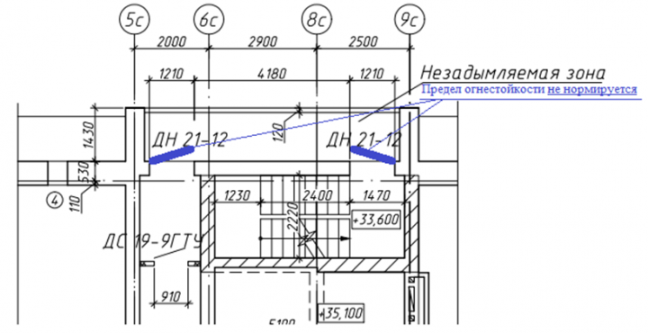 Нормируется ли предел огнестойкости дверей при выходах с технических этажей, которые предусмотрены через воздушную зону незадымляемой лестничной клетки по фрагменту плана, приложенного в файле?