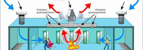 В соответствии с пунктом 7.2 СП 7.13130.2013 «Отопление, вентиляция и кондиционирование. Требования пожарной безопасности» удаление продуктов горения при пожаре системами вытяжной противодымной вентиляции следует предусматривать:
