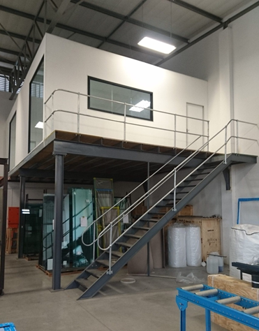 Таким образом, допускается выполнять лестницы, ведущие с антресолей производственных зданий из металла (негорючий материал).