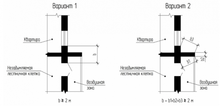 Вопрос в том, как правильно определять ширину простенка в случае если воздушная зона отделяется пилонами (см. прилагаемый файл "Воздушная зона"). Тогда ширина простенка определяется без учета пилона (вариант 1) или с учетом пилона как сумма кратчайших расстояний (вариант 2)?
