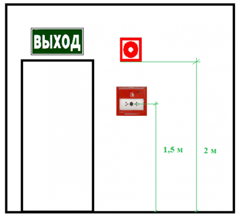 Согласно ГОСТ 12.4.009-83 ; п.1.12 . Для определения местонахождения стационарно установленной пожарной техники (устройства ручного пуска) должны применяться соответствующие указательные знаки по ГОСТ 12.4.026 с расположением их на видном месте на высоте 2-2,5 м от пола как внутри, так и вне помещений. В необходимых случаях должен устанавливаться также знак со смысловым значением "Проход держать свободным" по ГОСТ 12.4.026.