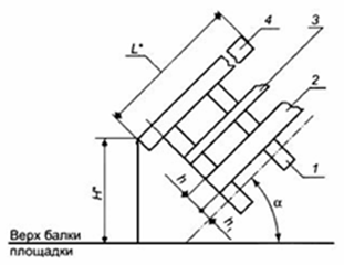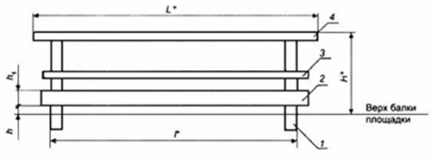 В данном случае (для ограждения именно площадок) в соответствии с требованиями ГОСТ Р 53254-2009 принимается h (высота от верха балки площадки до бортового элемента), а h1 (высота бортового элемента).